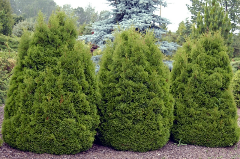 Туя западная Dumоsа - Отличный, неприхотливый, карликовый сорт туи. Размеры взрослого растения: высота 1,5 м., ширина 1 м. Годовой прирост: 5 см. К почве не требовательна, идеальная почва- суглинок. Идеальное растение для выращивания в контейнерах и рокариях. Подойдет она и для выращивания в вересковом саду.