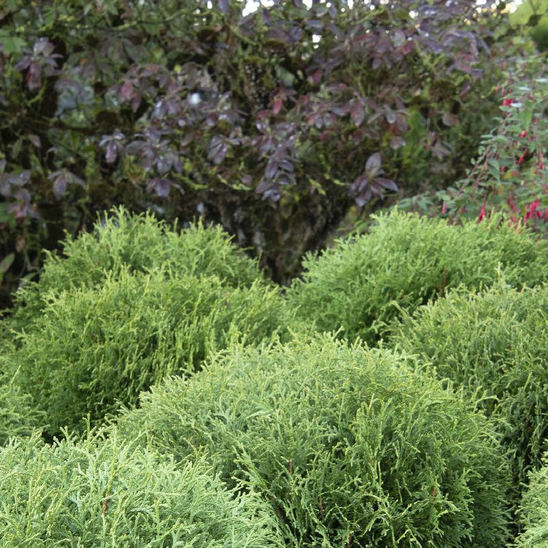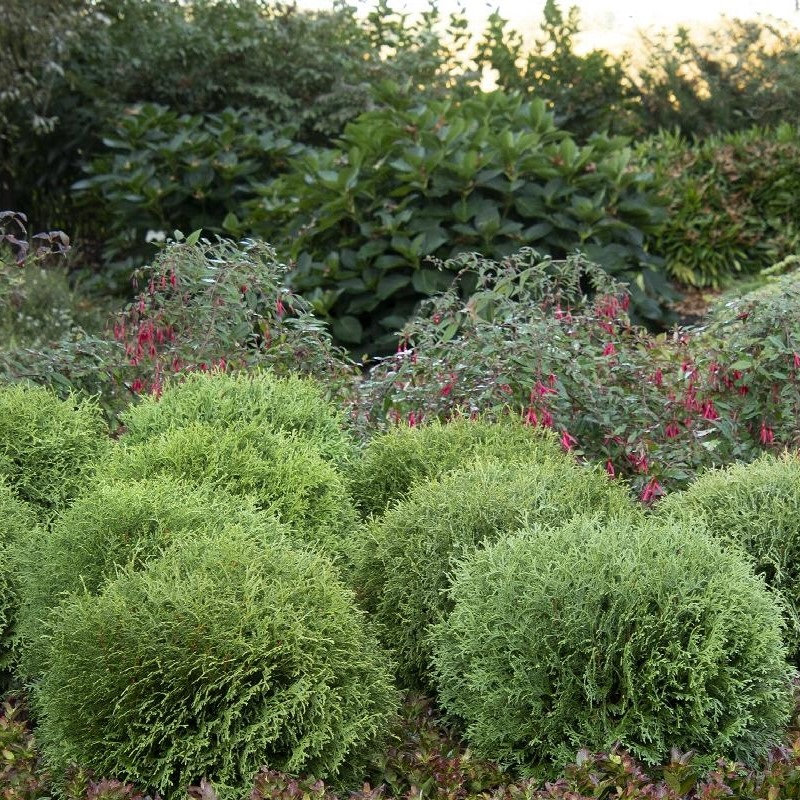 Туя западная 'Little Giant' — компактный хвойный кустарник с медленным ростом и аккуратной шаровидной кроной, высота и ширина которого достигает около одного метра. Летом хвоя ярко-зелёная, зимой она приобретает бронзово-зелёный оттенок, а овальные шишки добавляют декоративности. Растение хорошо развивается на солнечных участках и в лёгкой полутени, предпочитает плодородные, хорошо дренированные почвы. Молодые кустики требуют регулярного полива, особенно в засушливые периоды, а взрослые растения поливают по мере необходимости. Весной и летом внесение комплексных удобрений способствует сохранению насыщенной окраски хвои и здоровому росту. Для поддержания плотной и аккуратной формы рекомендуется удалять сухие и повреждённые ветви, формируя крону по мере необходимости. Туя 'Little Giant' устойчива к болезням и вредителям, что делает её надёжным и неприхотливым элементом ландшафтного дизайна, идеально подходящим для бордюров, альпийских горок и декоративных композиций.