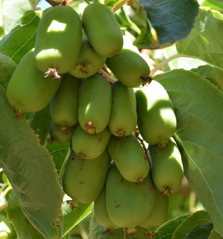Актинидия аргута Эстафета — Морозостойкая быстрорастущая лиана. Используют в качестве плодового и декоративного растения для вертикального озеленения. Плоды – ягоды (3х2 см), темно-зеленые, мясистые, в зрелом состоянии мягкие, съедобные, кисло-сладкие на вкус.
