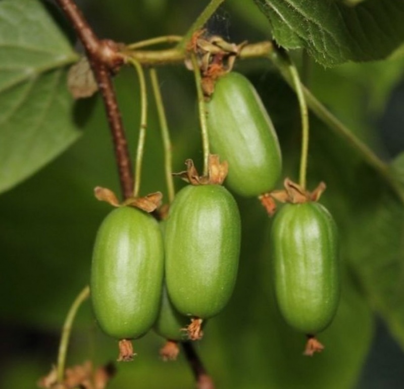 Актинидия аргута Таёжный изумруд — Морозостойкая быстрорастущая лиана. Используют в качестве плодового и декоративного растения для вертикального озеленения. Плоды – ягоды (3х2 см), темно-зеленые, мясистые, в зрелом состоянии мягкие, съедобные, кисло-сладкие на вкус.