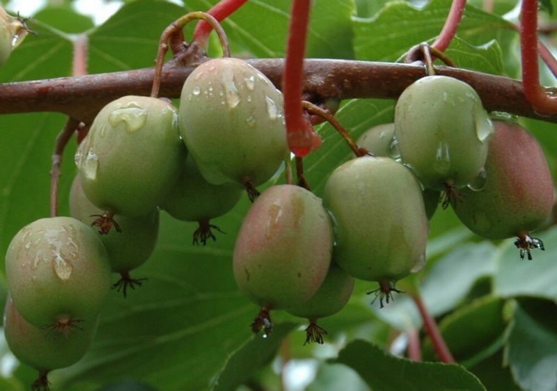 Актинидия джиральда Туземка — Морозостойкая быстрорастущая лиана. Используют в качестве плодового и декоративного растения для вертикального озеленения. Плоды – ягоды (3х2 см), темно-зеленые, мясистые, в зрелом состоянии мягкие, съедобные, кисло-сладкие на вкус. актинидия Джиральда похожа на атинидию Аргута, но имеет более крупные и пиятные на вкус плоды.