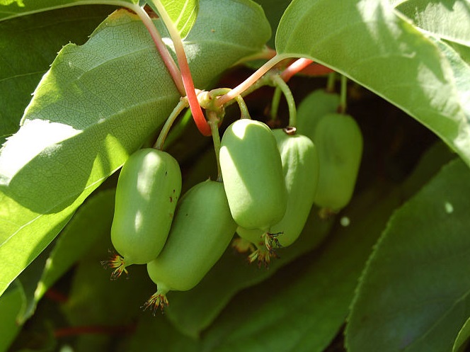 Актинидия коломикта Сладкая палочка — Это женский сорт, который нуждается в опылителе для формирования урожая. Растение может достигать высоты до 7 метров и имеет блестящие коричневые побеги, которые плетутся вокруг опоры.