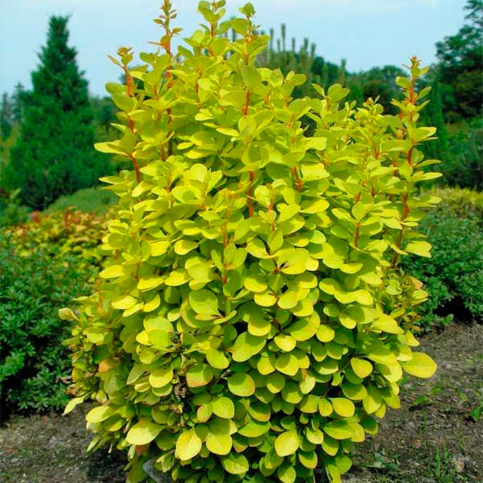 Барбарис Тунберга Maria — декоративный колючий кустарник. Высота: 1–1,5 м, ширина — 1 м. Крона со временем становится раскидистой, веерообразной.Цветки: мелкие, жёлтые с красноватым оттенком, появляютс яв конце мая-июне. Плоды: ярко-красные, блестящие, мелкие, созревают в конце сентября — октябре и остаются на кустах в течение зимы.