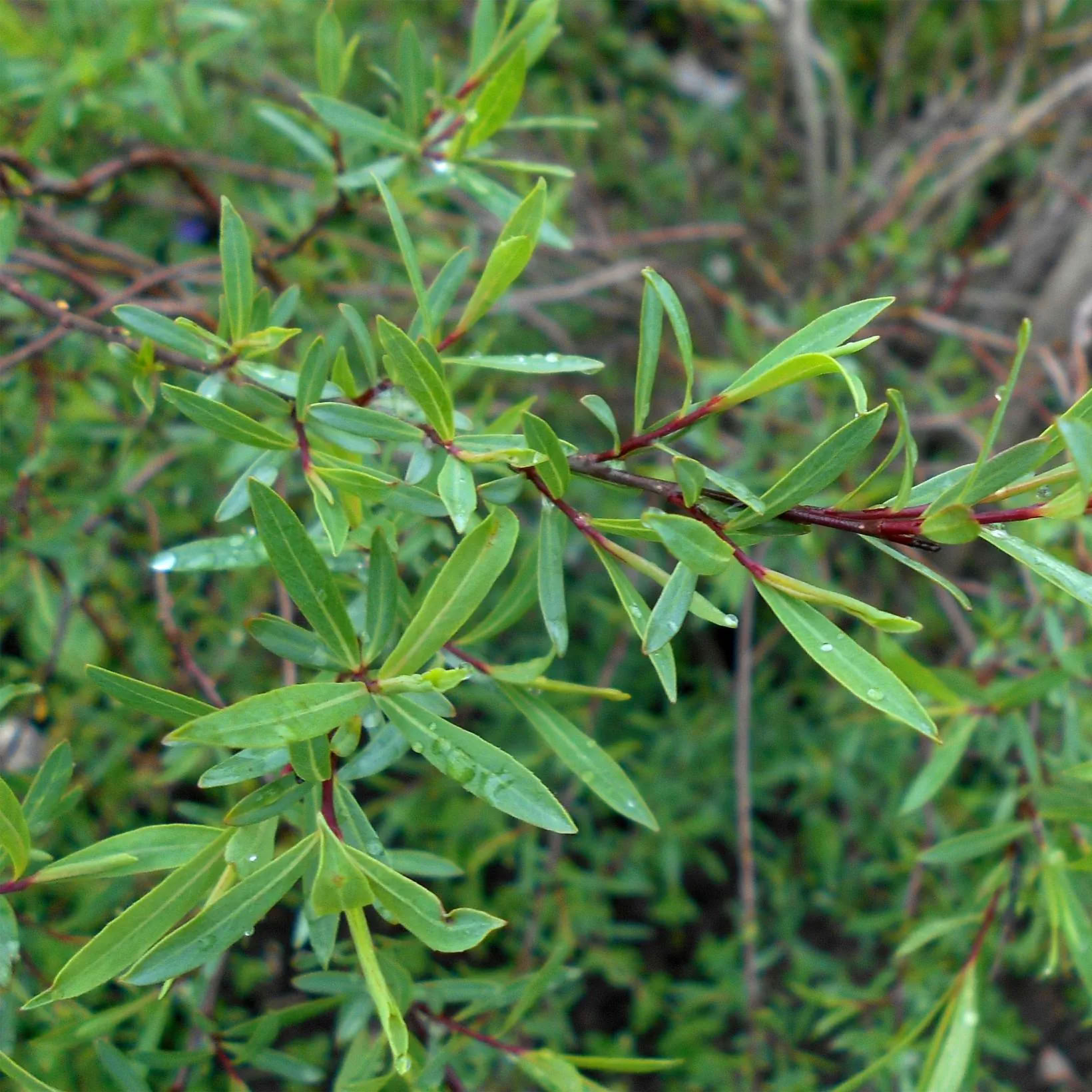Ива пурпурная Nana — карликовый декоративный кустарник с густыми пурпурными побегами и компактной кроной. Высота растения достигает 40–60 см, ширина — 50–70 см. Цветёт с апреля по май, образуя небольшие серо-пурпурные серёжки, которые добавляют декоративности ранней весной.