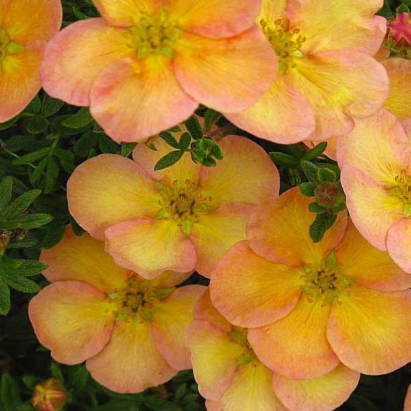 Лапчатка кустарниковая Daydawn - не высокий сорт лапчатки, высотой 0.6-0.8 м, с плотной раскидистой кроной диаметром до 1м. Листья мелкие, вытянутые, темно-зеленого цвета. Цветки лососевые, выцветающие до ранжево-розового. Цветение с июля до первых заморозков. Высаживается на солнечных и полузатененных местах, в полутени слабее цветет. Растение неприхотливо к почвам, но лучше растет на хорошо дренированных участках. Не любит засуху, требует обильного полива. Используется одиночно, группами, в альпинариях, в хвойных и лиственных композициях, живых изгородях и бордюрах.