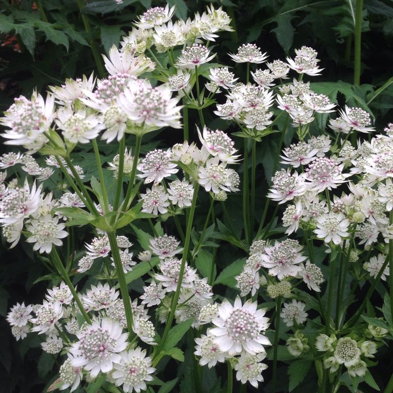 Астранция Star of Billion - многолетнее растение. Раскидистый куст диаметром 40-70 см. Цветки кремовые. Листья глубоко пальчато-рассеченные, на длинных черешках. Прицветники белые с зелеными кончиками. Цветет в июле - августе. Предпочитает солнце, полутень. Почва плодородная, влажная, богатая гумусом, суглинистая или супесчаная. Идеально подходит для создания красивых бордюров и клумб, коттеджных садов, а также для выращивания вблизи прудов и ручьев, хвойников, кустарников, живых изгородей. Хорошо сочетается с астильбой, колокольчиками и бегонией. Норма посадки 3-4 шт/кв.м.