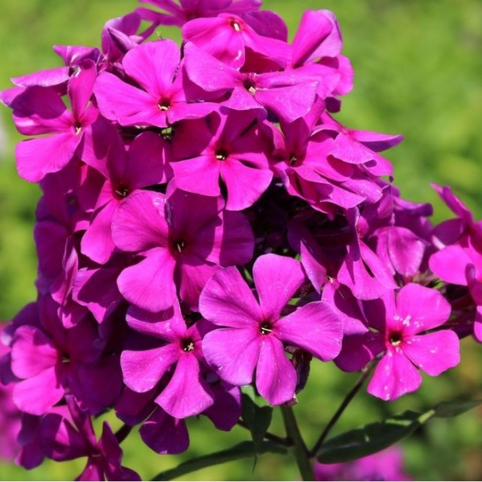 Флокс метельчатый "Düsterlohe selectie" - насыщенного пурпурно-фиолетового цвета. На ярком солнце выгорает, поэтому желательна ажурная тень при выборе места посадки. Высота 90 см. Среднеранний срок цветения, продолжительностью около месяца (начало-середина июля). Стоит выбрать дренированную, суглинистую, нейтральную или слабокислую почву в легкой полутени. Не переносит застоя влаги. Применяется традиционно в цветниках, миксбордерах с дельфиниумами, лилейниками, монардой, злаками, эхинацеей, полынью, рудбекией. Рекомендуется обрезать перед зимовкой, оставляя пенечки несколько см и профилактическая обработка фунгицидами. Норма посадки 6-8 шт./м².