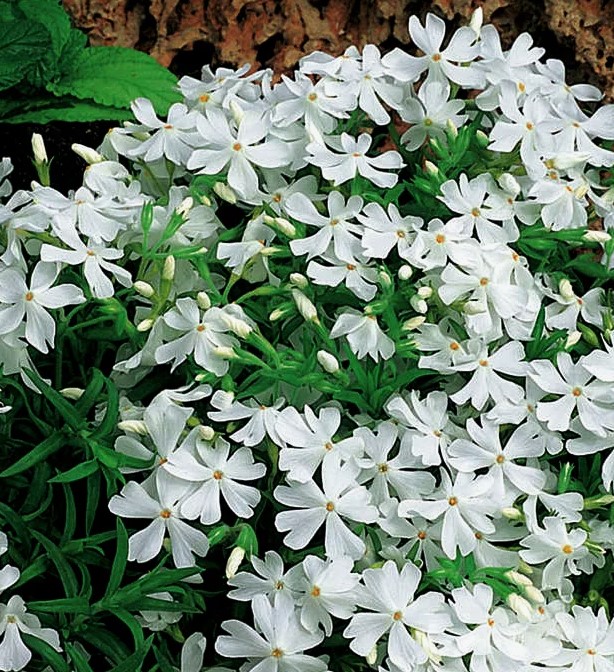 Флокс шиловидный ‘White’ — компактный многолетник с аккуратной розеткой тёмно-зелёных листьев. Высота взрослого растения 30–40 см, диаметр куста 25–35 см, идеально подходит для бордюров, миксбордеров и каменистых садов. Цветение начинается в начале лета и длится 4–6 недель, украшая сад белоснежными ароматными соцветиями.