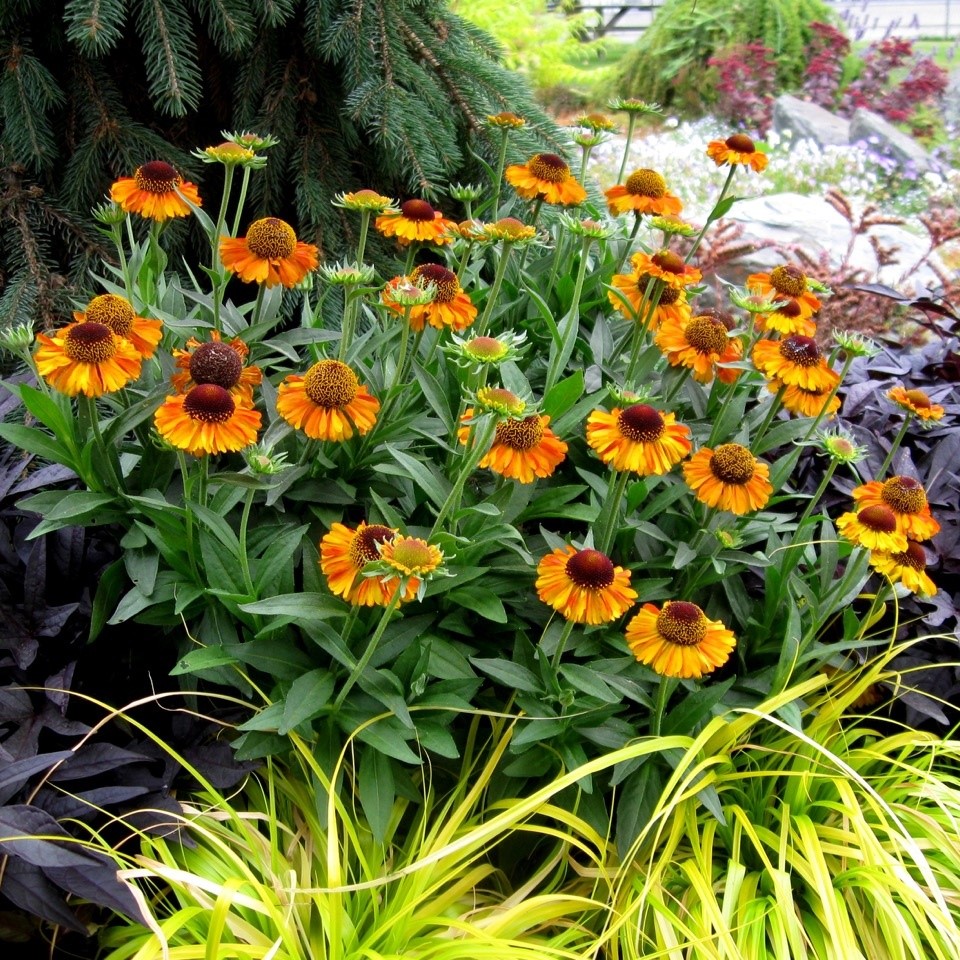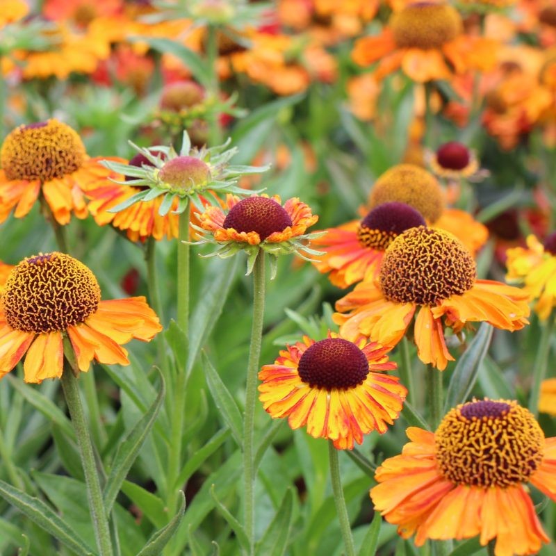 Гелениум Short And Sassy — привлекательный многолетник с крупными жёлто-оранжевыми цветками диаметром 6–8 см и тёмными серединками. Куст компактный, высота 40–50 см, ширина 35–40 см, побеги разветвлённые и аккуратные.