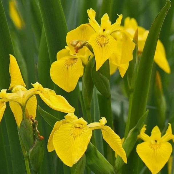 Ирис болотный - многолетнее растение с ползучим корневищем, с длинными ланцетными зелеными листьями (70–100 см длиной, 20–30 мм шириной). Цветонос до 100 см. Цветки крупные, желтые. Цветение июнь-июль. Корневище обычно погружено в воду. В процессе развития образует мощные куртины. Неприхотлив. Для мелководья и прибрежной зоны, растет и на более сухих местах. Норма посадки на 1 кв м 4 шт.