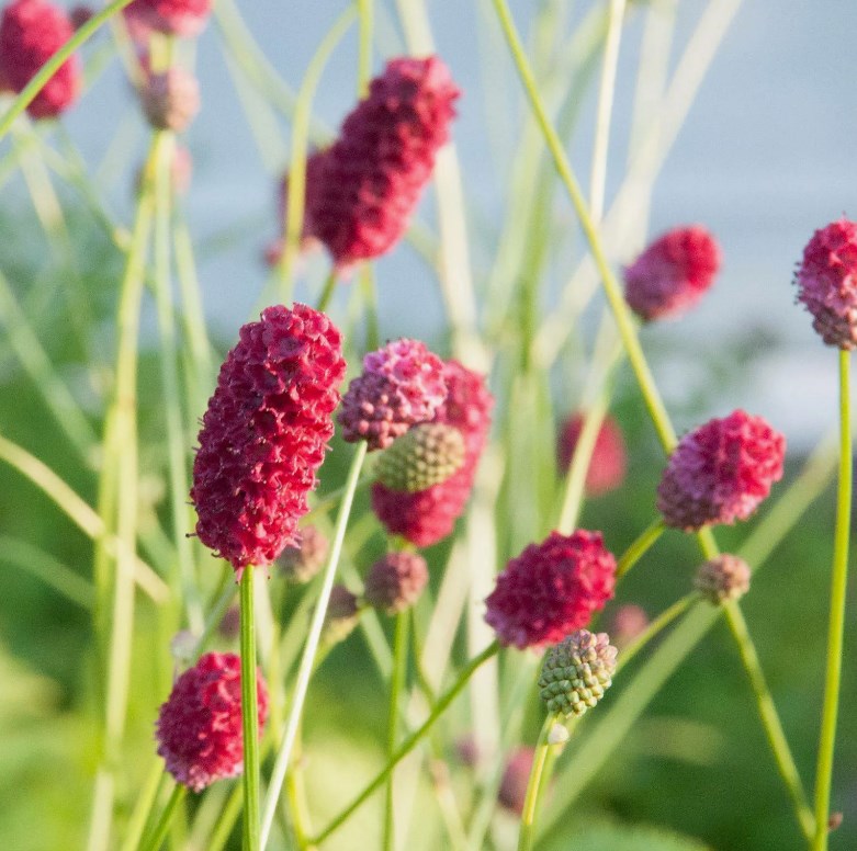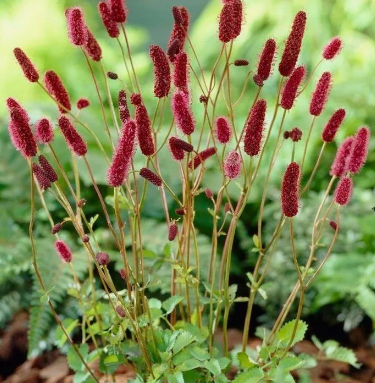 Кровохлёбка лекарственная 'Tanna' — компактный многолетник с ажурной листвой и декоративными соцветиями, высотой 40–60 см. Образует плотные куртины с тонкими, перистыми зелёными листьями. Цветки мелкие, тёмно-красные, собраны в цилиндрические соцветия, напоминающие щётки, распускаются с июля по сентябрь, привлекая пчёл и бабочек.
