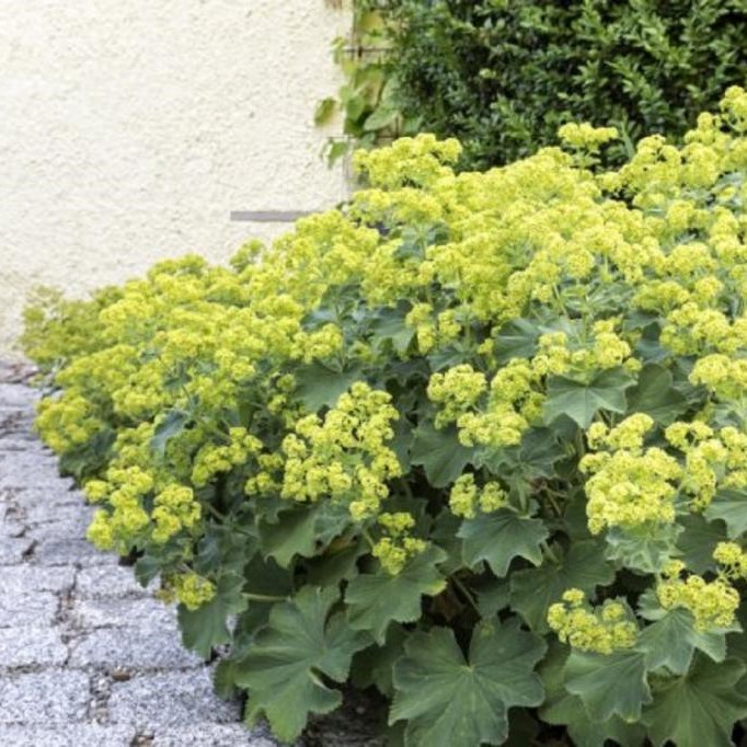 Манжетка мягкая Thriller yellow многолетник, высота от 40 до 60 см. Цветение продолжается с июня по август. Вырастают зелёно-жёлтые цветочки, соединённые в рыхлые соцветия. Теневыносливая, светолюбивая. Может расти на торфяных клумбах и каменистых горках Во время цветения цветки закрывают кустик ажурным покрывалом .Цветки – зеленовато-желтые. Это позволяет создать красочный декоративный покров, которому не нужен особый уход. Манжетка мягкая высаживается на альпийских горках и клумбах. Подходит как для одиночных, так и для групповых посадок. Манжетка способна быстро разрастаться.