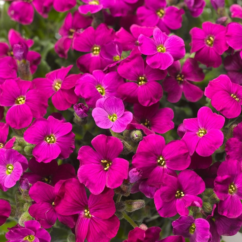 Обриета Red Shades — изящный почвопокровный многолетник, создающий плотный пурпурно-розовый ковёр, который оживляет сад уже с первых тёплых дней весны. Высота растения не превышает 10–15 см, но эффект цветения впечатляет: масса мелких соцветий покрывает листья сплошным ярким ковром.