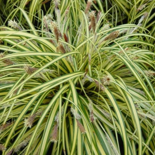 Осока Морроу "Variegata" - многолетнее почвопокровное растение. Высота 30 см. Жесткие пестролистные с белым окаймлением листья. Предпочитает дренируемые влажные почвы, но выдерживает некоторую сухость. Адаптируется к различным условиям и почвам. Не любит длительное затопление. Декоративна с весны по осень. Образуя плотные кочки, высветляет частично затененные и травянистые бордюры и придает им оригинальную форму. Подходят для создания рокариев и альпинариев, а также для посадки в миксбордерах, на газонах, в тенистом саду и на лесных участках с хостами, ирисами, медуницей и др. Для высадки около водоемов. С середины июня на ней появляются колоски. Норма посадки на 1 кв м 6-8 шт.