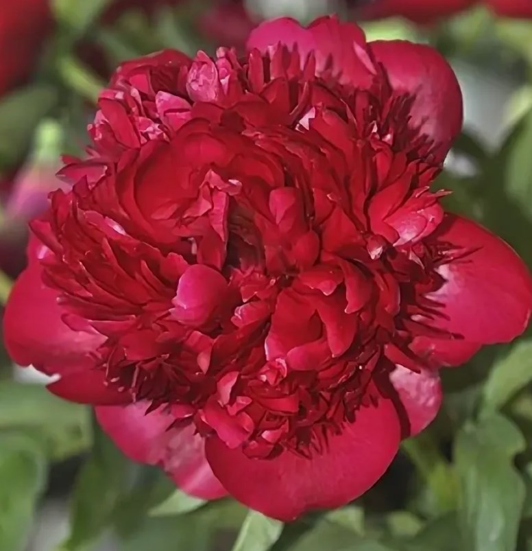 Пион Christmas Velvet — травянистый многолетник с крупными полумахровыми цветками насыщенно-бордового цвета, раскрывающимися с конца мая и длительно сохраняющими декоративность до середины июня. Высота куста составляет 70–90 см, диаметр куртины около 60–70 см. Листья густые, зелёные, создают красивый фон для насыщенных цветков. Цветение делает клумбы и бордюры эффектными, а срезанные цветы долго сохраняют форму и насыщенность цвета.