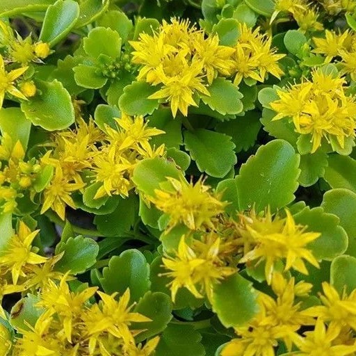 Седум камчатский компактный (эллакомбианум) - почвопокровный многолетник с мясистыми светло-зелеными яркими листьями. Высота 15 см. С наступлением осени листья приобретает красный оттенок. Обильно цветет в июне-июле, желтыми соцветиями. Не переносит лишь переувлажнение и слишком тяжелые почвы. Хорошо применим для оформления каменистых садиков, альпийских горок, на подпорных стенках. Высаживается для заполнения свободных участков грунта между растениями. Норма посадки 10 шт./м².