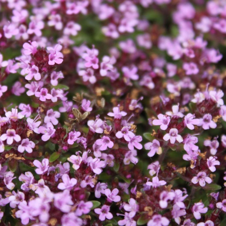 Тимьян ползучий Shepards - душистый, многолетний кустарничек. Высота до 5-10 см. Мелкие, эллиптические, светло-зеленые листья. Красно-пурпурные цветки собраны в головчатые соцветия. Цветет в июне – июле. Декоративен весь вегетационный сезон. Предпочитает освещенные места, переносит легкое затенение. Супесчаные, дренированные, нейтральные почвы. Применяют при закладке пряно-ароматических грядок, при оформлении каменистых садов, альпийских горок, подпорных стенок. В миксбордерах сочетается со злаками, полынью, иссопом, низкорослой гвоздикой, бархатцами, с первоцветами. Отлично смотрится в подвесных кашпо. Норма посадки на м2 9-11 шт.