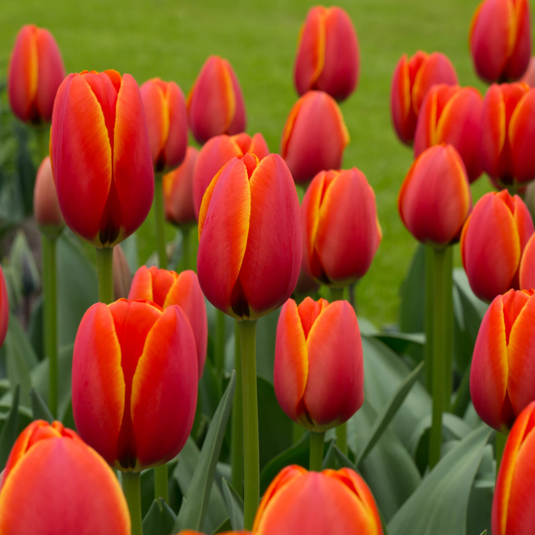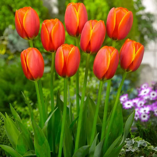 Тюльпан World’s Favourite — сорт с насыщенно-красными лепестками и широкой жёлтой каймой.