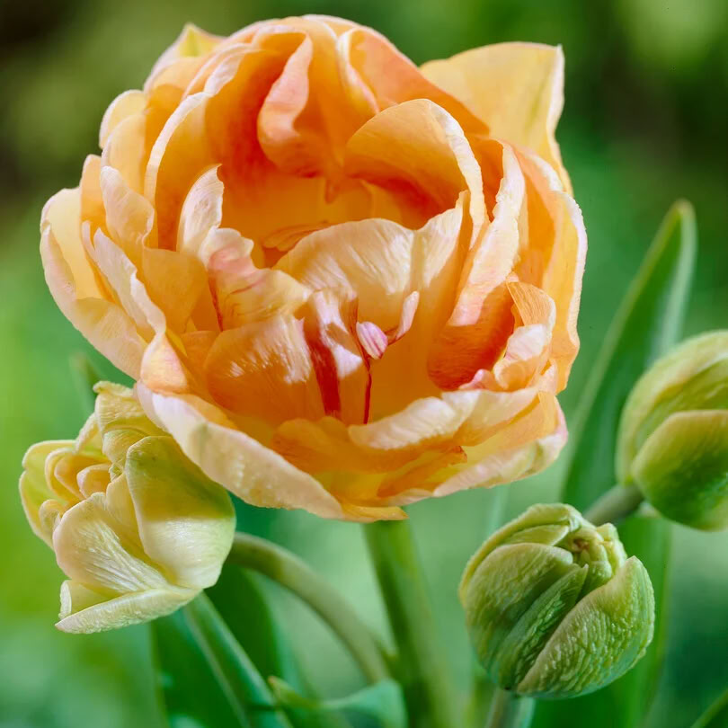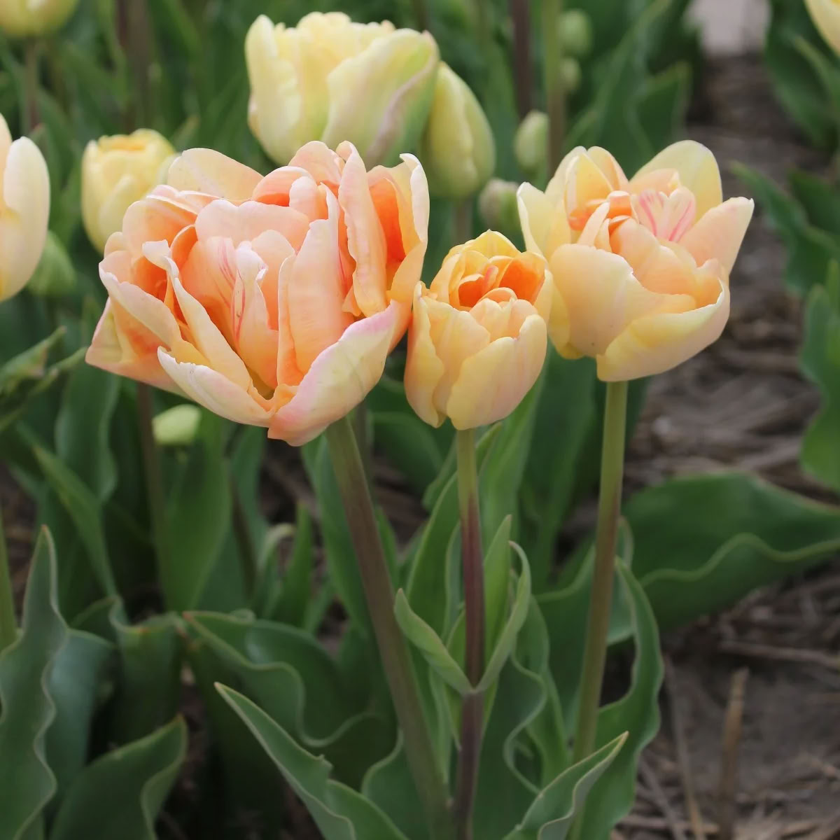 Тюльпан Charming Lady — изящный сорт с крупными махровыми цветами нежного розово-кремового оттенка с лёгким персиковым румянцем. Высота растения достигает 45–55 см, что делает его идеальным для оформления клумб, бордюров и срезки.