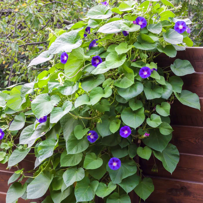 Ипомея — вьющееся декоративное растение с быстрорастущими стеблями и крупными сердцевидными зелёными листьями. Длина побегов может достигать 2–4 метров, что делает её идеальной для вертикального озеленения, покрытия решёток, арок и заборов. Цветки воронковидные, ярких оттенков — синие, фиолетовые или розовые, распускаются с июня по сентябрь, украшая сад и привлекая бабочек.