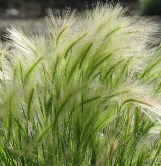 Ячмень гривастый (Hordeum jubatum) — декоративный злак, образующий эффектные куртины из тонких серо-зелёных стеблей. Над ними появляются пушистые шелковистые колосья с длинными остями, которые меняют оттенок от зелёного через розово-фиолетовый к серебристому при созревании, словно сад покрыт мягким сиянием. Куст достигает 15–50 см в высоту, цветёт летом, а декоративность сохраняется долго благодаря пушистым колоскам, которые остаются красивыми даже после увядания. Этот многолетник особенно хорош в бордюрах, миксбордерах, рокариях и сухих композициях, легко сочетаясь с низкими многолетниками и цветущими кустарниками, создавая лёгкость и динамику в саду.