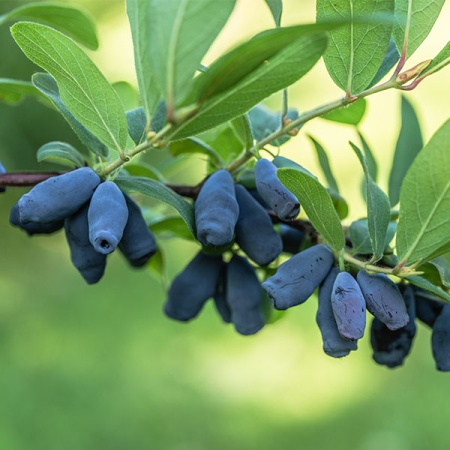 Жимолость Омега — среднерослый многолетний кустарник с густой зелёной листвой и крупными ягодами синим‑тёмно‑фиолетовым оттенком. Ягоды созревают в конце мая — начале июня, имеют сладкий вкус с лёгкой кислинкой и идеально подходят для свежего употребления, приготовления джемов, компотов и десертов.