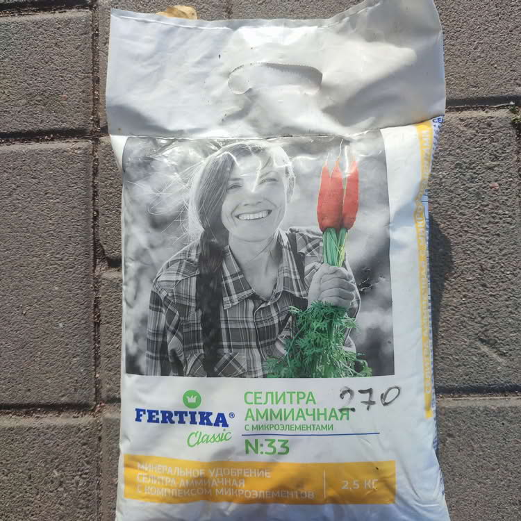 Аммиачную селитру хорошо использовать для подкормки плодовых деревьев через 5-6 дней после цветения и повторно через 25-30 дней (20-30 г/ м2), кустарников (10-15 г/м2), овощей (двукратно по 5-10 г/м2), картофеля в фазу бутонизации (5-7 г/м2).