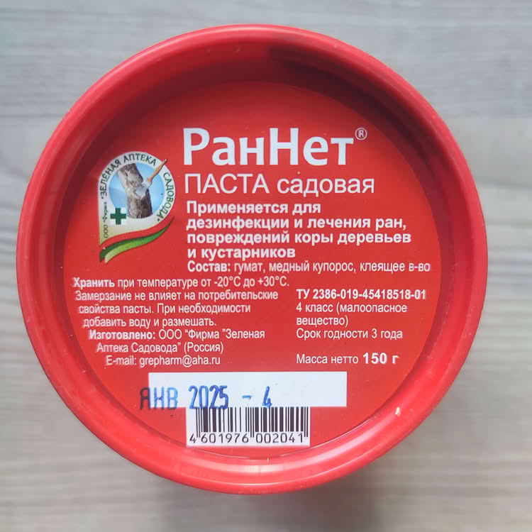 Паста садовая РанНет (медный купорос + гумат + клеящее вещество). Биотехническое средство.
