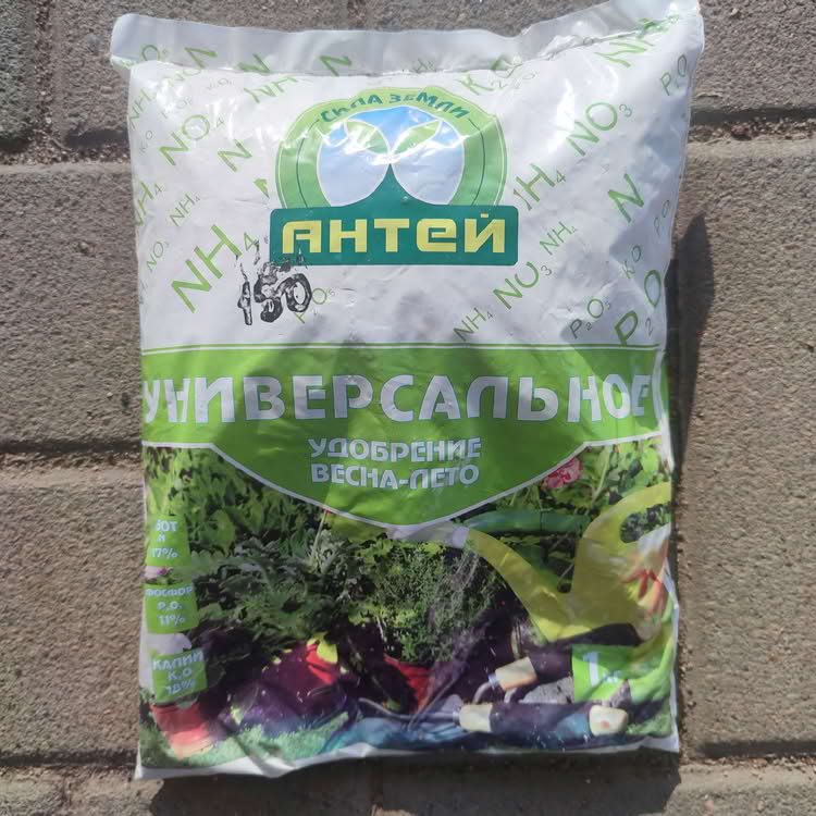 Удобрение Весна-лето Антей» (N – 17%, P2O5 – 11%, K2O – 18%).